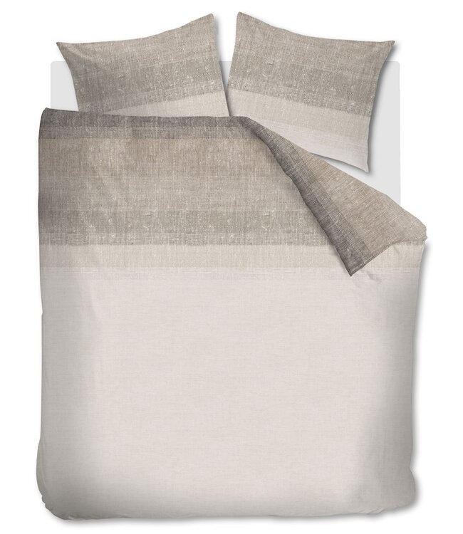 Het Ariadne at Home Frontier zand dekbedovertrek straalt rust en verfijning uit. Het stijlvolle dessin met brede horizontale banen en een subtiele geweven structuur geeft het ontwerp een elegante en natuurlijke uitstraling. De zachte overgangen en verfijnde textuur zorgen voor een harmonieus geheel dat perfect past in een slaapkamer met een serene en tijdloze sfeer. Ideaal voor wie houdt van een ingetogen en stijlvol interieur.