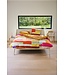 Auping Painted canvas Dekbedovertrek laat je slaapkamer stralen. Het dekbedovertrek is een echt artistiek meesterwerk. Het kleurrijke blokkenpatroon in warme tinten zoals oranje, rood en geel zorgt voor een vrolijke en energieke uitstraling. Zin in een andere sfeer? Keer het dekbed om en gebruik de effen camelkleurige achterkant.