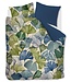 Beddinghouse Dekbedovertrek Sue Blue Green is geïnspireerd op de botanische trend. Op het overtrek zijn grote Ginko bladeren transparant over elkaar heen geplaatst, om zo een prachtige gelaagdheid te creëren. De blauw- en groentinten geven dit overtrek een frisse uitstraling. De ondergrond heeft een beige kleur met een geweven structuur. De achterzijde van het overtrek heeft een effen donkerblauwe kleur. Het overtrek heeft een chique glans en voelt heerlijk zacht aan door de satijnweving.