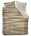 Dekbedovertrek Elie combineert een modern ontwerp met een sfeervolle uitstraling. De abstracte horizontale banen in warme goud- en natureltinten, samen met de subtiele ikat-weefstructuur, zorgen voor een luxe en trendy look. De effen achterzijde biedt veelzijdigheid in styling, ideaal voor diverse interieurs.