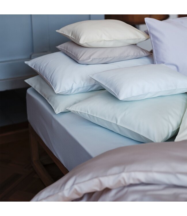 Deze kussenslopen zijn vervaardigd van 100% Pima katoen met extra lange vezels, geweven in de kenmerkende ‘Swiss setting’. Dit resulteert in een uitzonderlijk zachte en soepele stof met een verfijnde glans. Het lichte satijn voelt aangenaam koel en comfortabel aan, ideaal voor een ontspannen en hoogwaardige nachtrust.