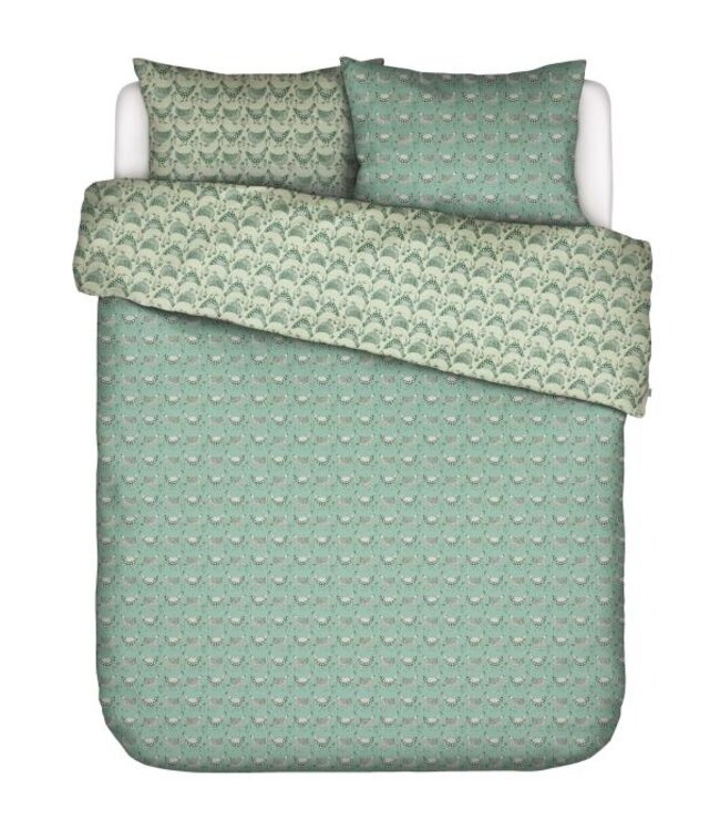 Essenza & Co Chicken Run Dekbedovertrek Turquoise is gemaakt van 100% biologisch katoen perkal (GOTS). Dit Dekbedovertrek van Essenza & Co laat je vrolijk wakker worden. Kippen met een handgetekend grafisch verenpatroon scharrelend door een groen bloemenveld. Aan de andere zijde lopen de kippen door in een tweetonige kleurstelling.