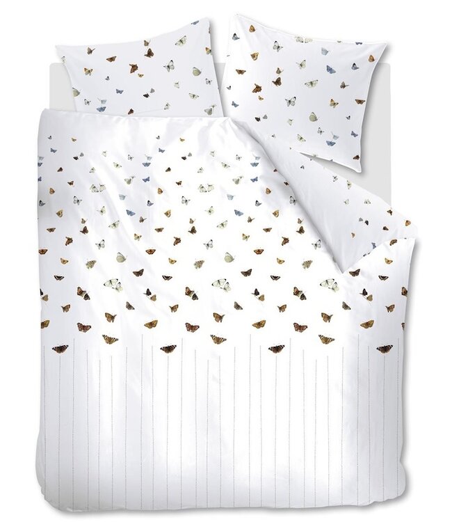Marjolein Bastin Mariposa Multi dekbedovertrek is geïnspireerd op de sfeervolle en landelijke tekeningen van Marjolein Bastin. Dit dekbedovertrek voegt een romantische sfeer toe aan de slaapkamer. Kleurrijke vlinders in tinten zoals oranje. bruin. wit en blauw fladderen speels alle kanten op en komen prachtig uit op de frisse. witte ondergrond. De getekende stippellijntjes aan de onderkant geven een verfijnde finishing touch. Duurzame verpakking In het kader van duurzaamheid bestaat de verpakking uit een kartonnen banderol. De banderol heeft een uitsnede. zodat je de stof gemakkelijk kan voelen en het dessin kan zien. De banderol kan worden weggegooid met het oud papier voor recycling.Kwaliteit Het dekbedovertrek is gemaakt van 100% katoen. 144 TC. Het overtrek heeft over de gehele breedte aan beide zijden een dubbele instopstrook. De totale lengte van het dekbedovertrek is 240 cm. Het overtrek is geschikt voor dekbedden van 200 cm. 210 cm of 220 cm. Better Cotton Dit product is geproduceerd door Bedding House. exclusief voor Marjolein Bastin. Door katoenproducten te kiezen van ons. steunt u onze investering in de missie van Better Cotton. Dit product is ingekocht via een mass balance systeem en bevat daardoor mogelijk geen Better Cotton. Zie bettercotton.org/learnmore.
