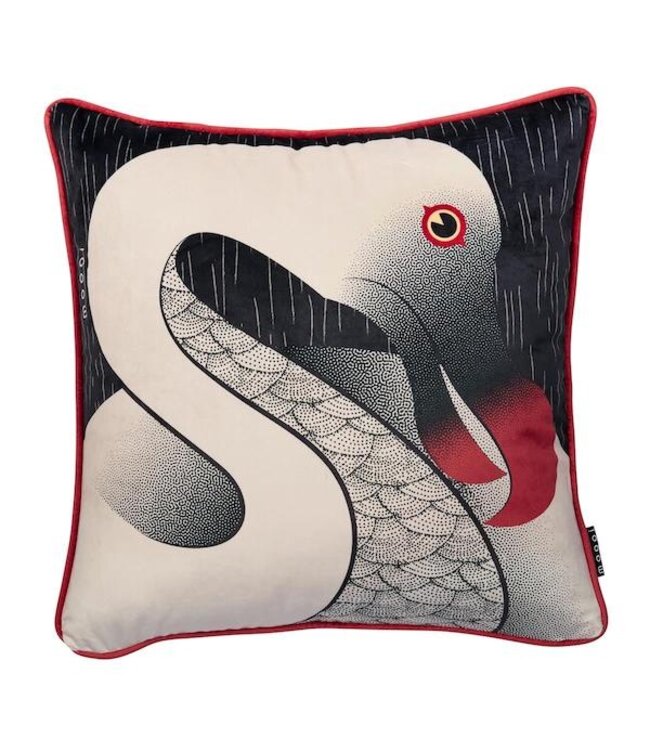 MOOOI Dodo Pavone Sierkussen Black maakt deel uit van de Extinct Animals bedding collectie van Moooi. Het sierkussen is geïnspireerd op de veren van de grootste, uitgestorven, vogel van het eiland Mauritius, de Dodo Pavone. Dit sierlijke kussen heeft op de voorkant een moderne digitale print van het uitgestorven dier en op de achterkant een motief gebaseerd op de uiterlijke kenmerken ervan. Het kussen is gemaakt van een eersteklas fluwelen stof die heerlijk zacht en luxueus aan voelt door de comfortabele textuur. Het sierkussen is rondom afgewerkt met een decoratieve ronde bies en heeft als prachtig detail een ritssluiting met het Moooi logo.Het sierkussen is gemaakt van 100% polyester fluweel en heeft de afmeting 50 x 50 cm. Het sierkussen is voorzien van een ritssluiting met Moooi logo en is rondom afgewerkt met een decoratieve ronde bies.
