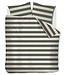 Riviera Maison Brayden Dekbedovertrek Groen is modern, stoer en tijdloos tegelijk. Het overtrek heeft aan de voor- en achterkant een print van horizontale strepen, afwisselend in groen en off-white op een ondergrond van een geprinte stofstructuur. Aan de bovenkant van het overtrek staat de tekst: "Mountain Lodge Riviera Maison". De kussenslopen zijn rondom afgewerkt met een chique bies in dezelfde donkergroene kleur als de strepen.