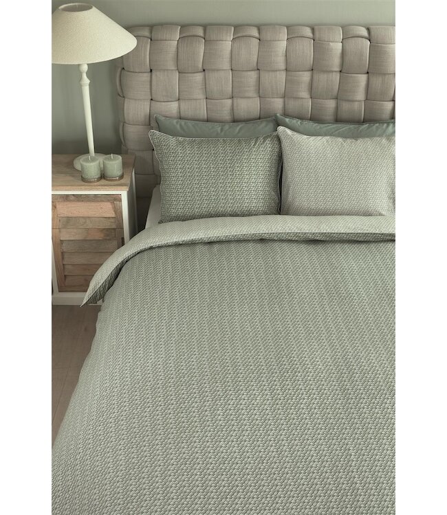 Rivièra Maison Dekbedovertrek Bambu Grijsgroen brengt een serene, natuurlijke sfeer in je slaapkamer. De subtiele all-over print met een verfijnde geweven bamboe look geeft het overtrek een rustige en stijlvolle uitstraling. De grijsgroene tint voelt zacht en modern aan en past perfect in zowel een minimalistisch als warm interieur.