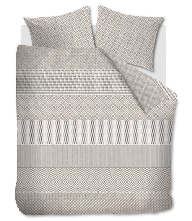 Het Rivièra Maison Francesco zand dekbedovertrek heeft een strak opgebouwd dessin van fijne grafische patronen in brede horizontale banen. De afwisseling van subtiele geometrische elementen geeft het ontwerp een moderne en ordelijke uitstraling. De zachte zandkleur zorgt voor een warme, rustige sfeer die perfect past binnen een stijlvol en tijdloos interieur. Ideaal voor wie een elegante en ontspannen ambiance in de slaapkamer wil creëren.