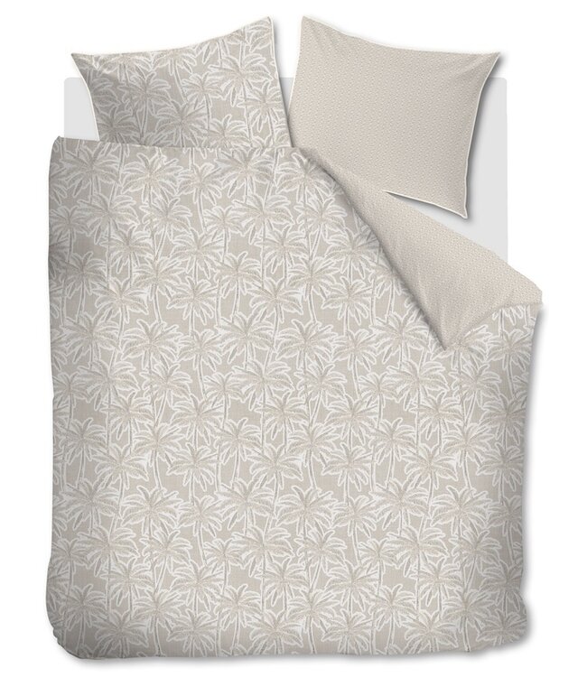 Het Rivièra Maison Palm Paradise zand dekbedovertrek heeft een speels patroon van dicht op elkaar staande palmbladeren. Dit herhalende botanische dessin zorgt voor een dynamisch en exotisch effect. De zachte zandkleur geeft het geheel een rustige en stijlvolle uitstraling, waardoor het perfect past in een moderne of natuurlijke slaapkamer. Ideaal voor wie een tijdloos dessin met subtiele tropische invloeden zoekt.