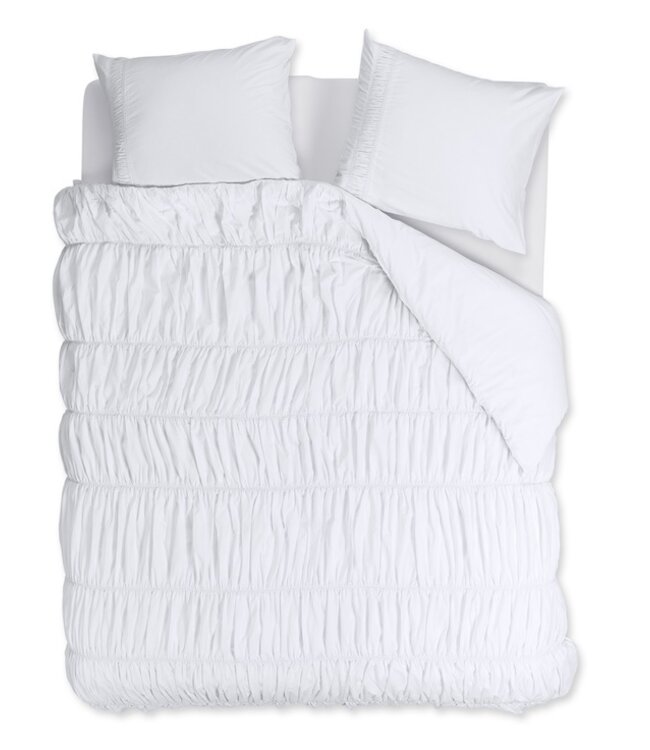 Het Rivièra Maison Ruffle wit dekbedovertrek valt direct op door zijn rijke en verfijnde uitstraling. De geplooide stof geeft het overtrek een volumineuze textuur, terwijl de horizontale plooien zorgen voor een speels en elegant effect. De frisse witte kleur versterkt het luxe karakter en maakt dit ontwerp een stijlvolle blikvanger in de slaapkamer. Perfect voor wie houdt van een tijdloos dessin met karakter en een subtiele hotelchique uitstraling.