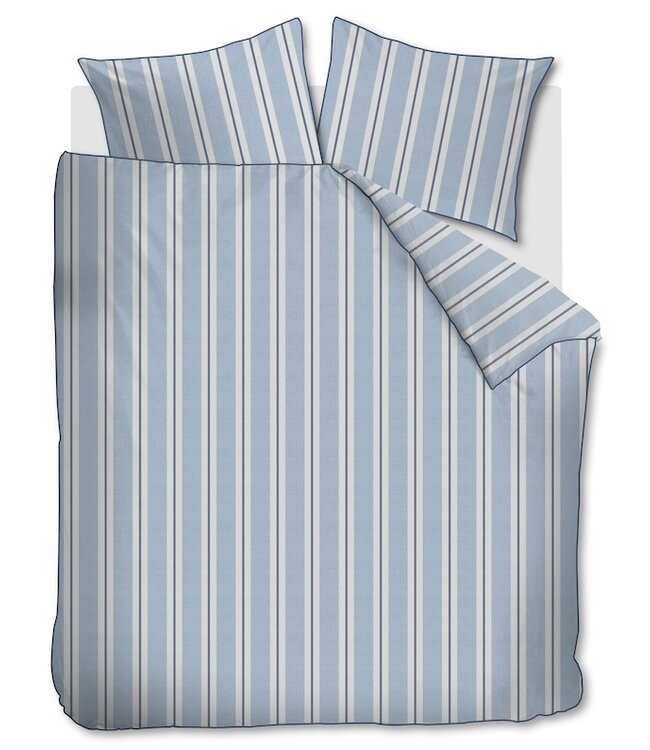 Het Rivièra Maison Silvan blauw dekbedovertrek heeft een verfijnd gestreept dessin dat rust en eenvoud uitstraalt. De verticale lijnen zorgen voor een optisch verlengend effect en geven het ontwerp een elegante, gestructureerde uitstraling. Het subtiele patroon en de frisse blauwe kleur creëren een kalme sfeer in de slaapkamer. Ideaal voor wie houdt van een tijdloos dessin met een stijlvolle en serene uitstraling.