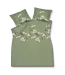 tarling smoke green dekbedovertrek van Vandyck heeft een knusse uitstraling door de vogels die met elkaar lijken te kletsen.