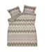Ziggy thyme dekbedovertrek heeft hele fijne zigzaglijnen in groen, roze, bruin, wit en beige. De achterkant van het dekbedovertrek is effen thym groen. De kussens hebben aan beide zijden dezelfde zigzaglijnen. Door de digitale druk, komt de levensechte print helemaal tot leven. Ziggy thyme dekbedovertrek van Vandyck is met de fijne lijnen en lichte kleuren op subtiele wijze een accent in je slaapkamer.